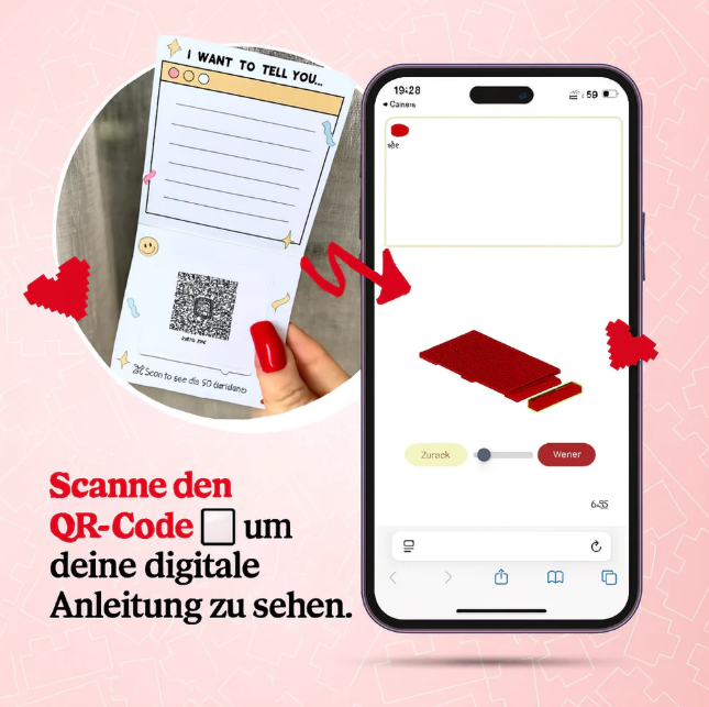 Sobald dein personalisiertes Set bei dir ankommt, scanne einfach den QR-Code, um deine individuelle Bauanleitung zu öffnen.