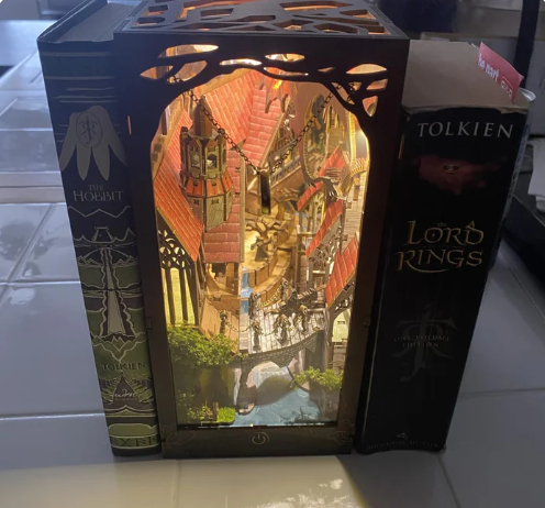 Stelle das Book Nook zwischen deine Bücher und genieße jedes Mal den leuchtenden, filmreifen Effekt, wenn du daran vorbeigehst.
