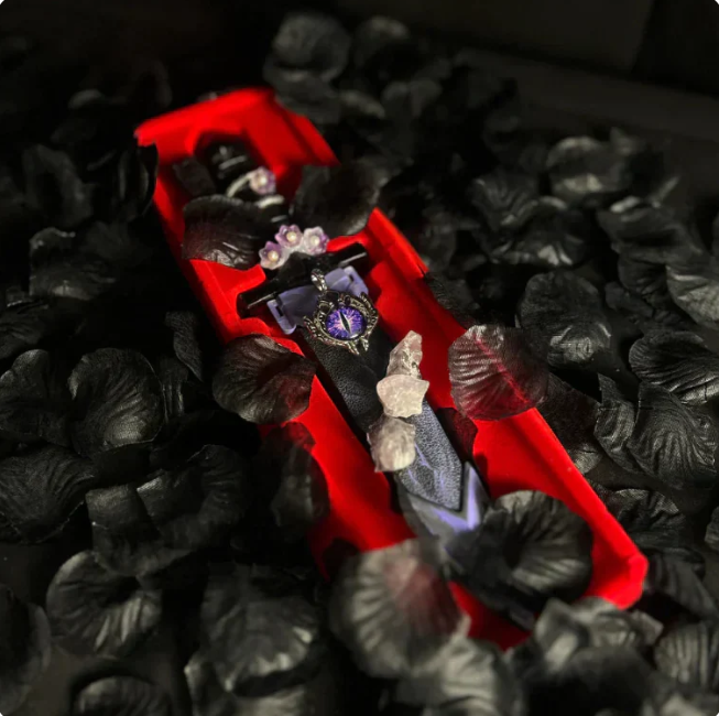 Ja – die Klinge besitzt eine geschärfte Schneide. Die Nightveil Blades sind jedoch in erster Linie als Sammlerstücke, Altardekoration oder Ausstellungsobjekte gedacht. Sie sind nicht für echten Kampf oder intensive Nutzung vorgesehen.