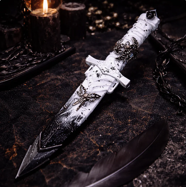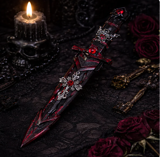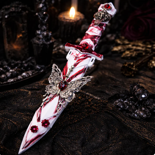 Diese Dolche werden aus hochwertigem Legierungsstahl gefertigt. Das Material ist langlebig und erlaubt besonders feine Details. Jedes Stück wird mit faszinierenden Farben und Akzenten veredelt – ideal für Sammler, zur Dekoration oder für mystische Inszenierungen.